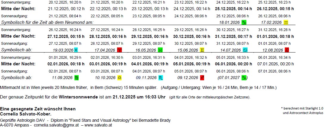 "Mitternacht" ist eigentlich genau die Mitte zwischen Sonnenaufgang und Sonnenuntergang, wo auch energetisch ein "Tor" aufgeht, durch das die Verbindung zum Kosmos noch viel stärker spübar ist. Wegen der einheitlichen Zeitzonen weicht dieser Zeitpunkt aber meist etwas von dem Datumswechsel um 0:00 Uhr ab.